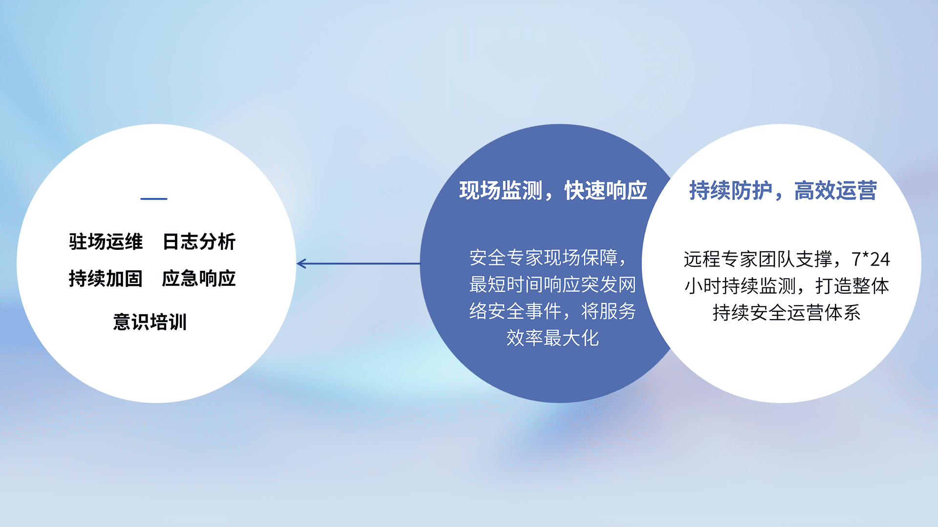 针对客户行业特性,,,,提供专属的一站式安全管理服务,,,,帮助客户全面感知网络空间威胁,,,,通过安全专家的线上、、、、线下防护支持,,,,实现风险闭环,,将安全保障常态化,,为客户打造常态化安全运维运营服务。。。。