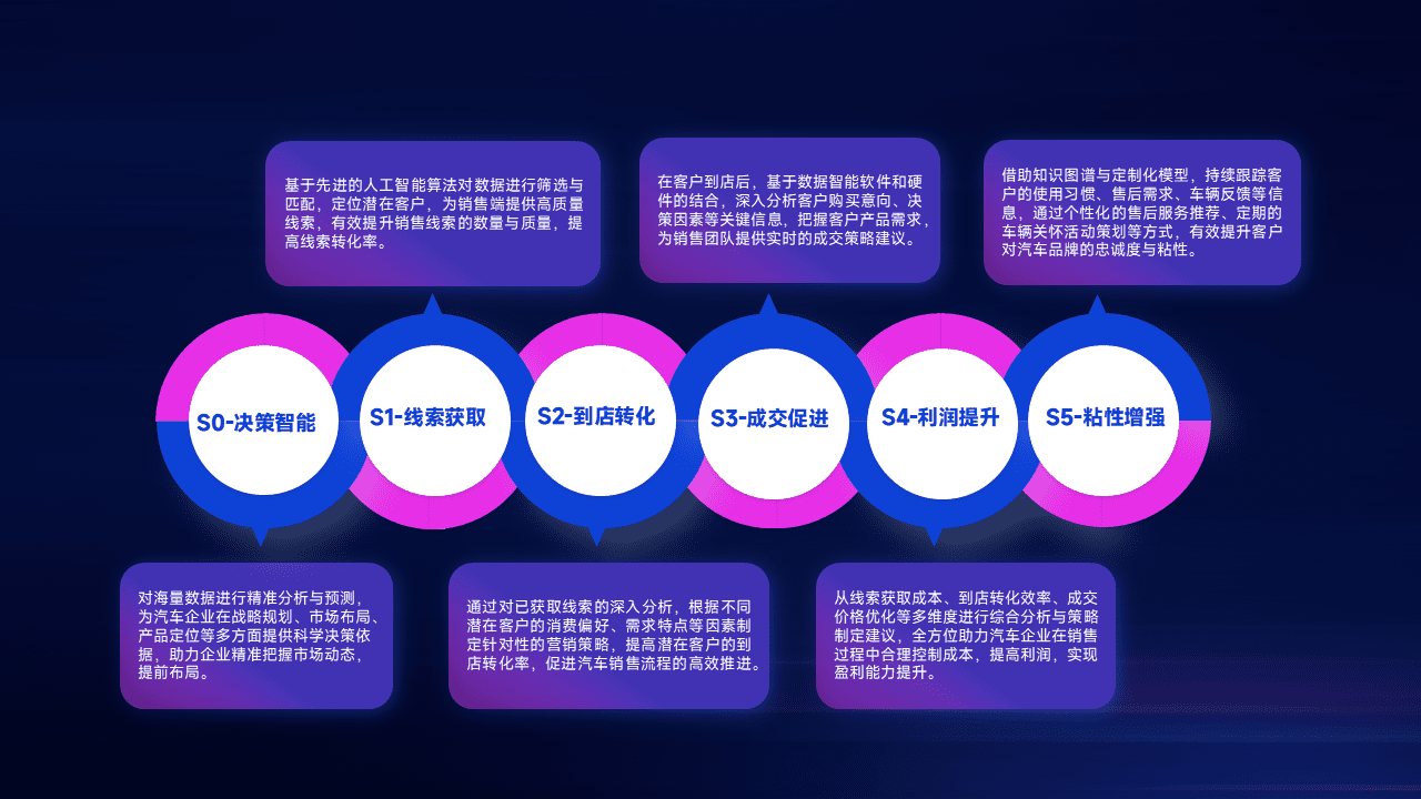 通过拓宽潜在客户来源、、、优化线索分配并提高到店转化率,,以增强销售效率。。同时,,,,利用线索数据不断优化分析模型,,有效提升转化率,,,扩大营销影响力。。